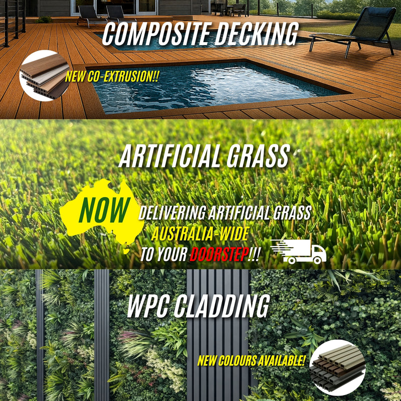 Introducing the latest in composite decking and cladding technology by Ausdecking. Featuring extra thick composite decking boards for more stability and strength, with pressure printed finish to give a natural timber look and feel, all fixed with stainless steel hidden clip systems. The Classic and Colossal composite decking range by Ausdecking is hassle free, no more staining and oiling every year while utilizing the hidden clip system to remove the ugly and dangerous appearance of surface screws. Our composite cladding range is designed to be installed with ease onto any suitable surface to give an instant and elegant effect. Made from recycled bamboo and plastic, composite decking is the future of decking. No more oiling and staining! Easy to wash off any spills or mess. The Colossal Composite Decking brings sophistication and a unique style to your outdoor living space. It's sleek design and extra-wide planks make it an impressive centerpiece, ideal for crafting luxurious areas. For the most exclusive living area, composite decking by Ausdecking is the perfect fit.