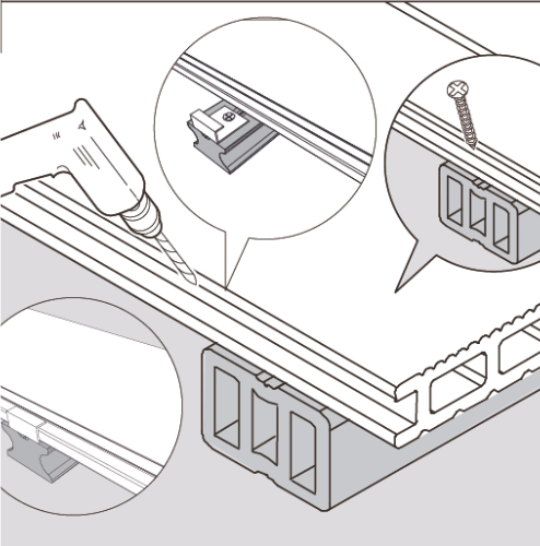Once your deck surface is complete, cover the ends of the decking and your starter clips by applying an Ausdecking fascia board. Simply cut to size and use timber screws to screw the fascia board into the joists. We recommend pre drilling your holes.
